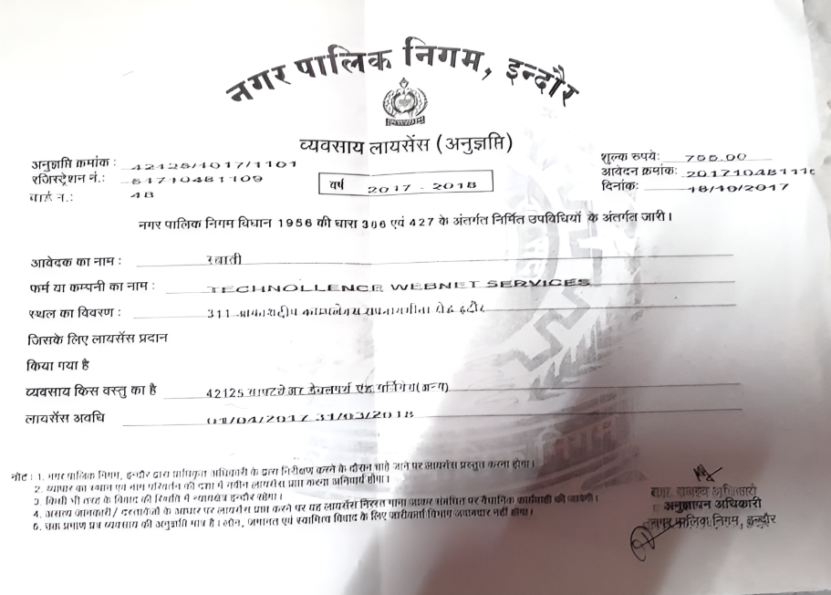 Registered under Madhya Pradesh Shops & Establishments Act.